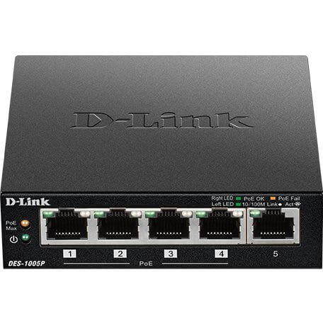 Konni - D-Link Switch 5 Ports 10/100 Mbits dont 4 PoE at 60W - DES-1005P/E