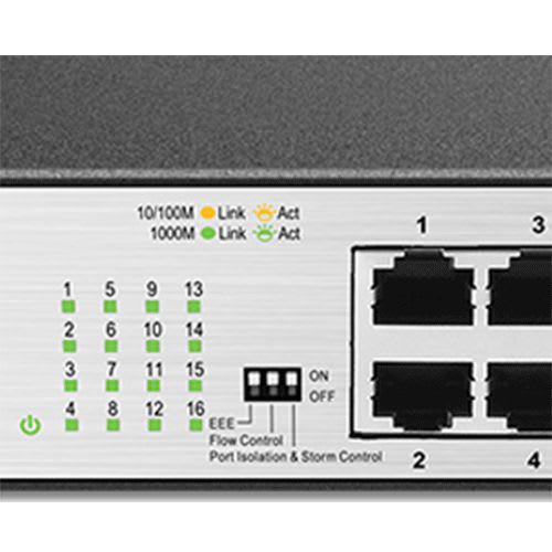 Avec une installation plug-and-play et les ports Gigabit cuivre capables de se connecter à votre câble paires torsadées Cat.5 existant, ce produit améliore instantanément les performances de votre groupe de travail sans que vous n'ayez besoin d'installer des câbles fibre coûteux ou de refaire une configuration complexe. Tous les ports supportent les vitesses réseaux 10/100/1000Mbps à détection automatique et l'ajustement automatique full/half duplex.