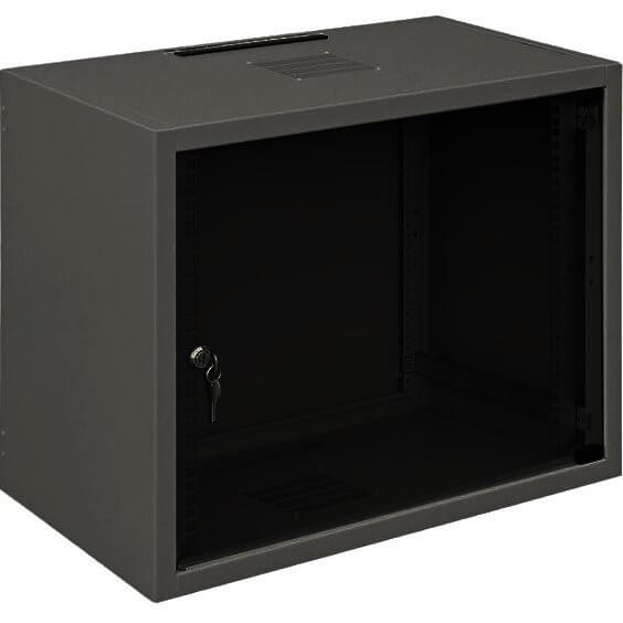 EonisCoffret de brassage 19" Porte en verre trempé Pan arrière amovible 2 montants 19" réglables Serrure avec clés Noir Haut utile : 12U Prof utile : 460 mm Larg utile : 19'' Charge utile : 30kg Dimensions ext (LxHxP) : 600 x 604 x 500 mm