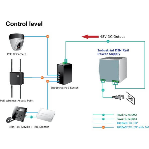 PlanetAlimentation industrielle (Rail DIN) entrée AC 100-240V 50/60Hz et sortie DC 48V 240W -20/+70°C