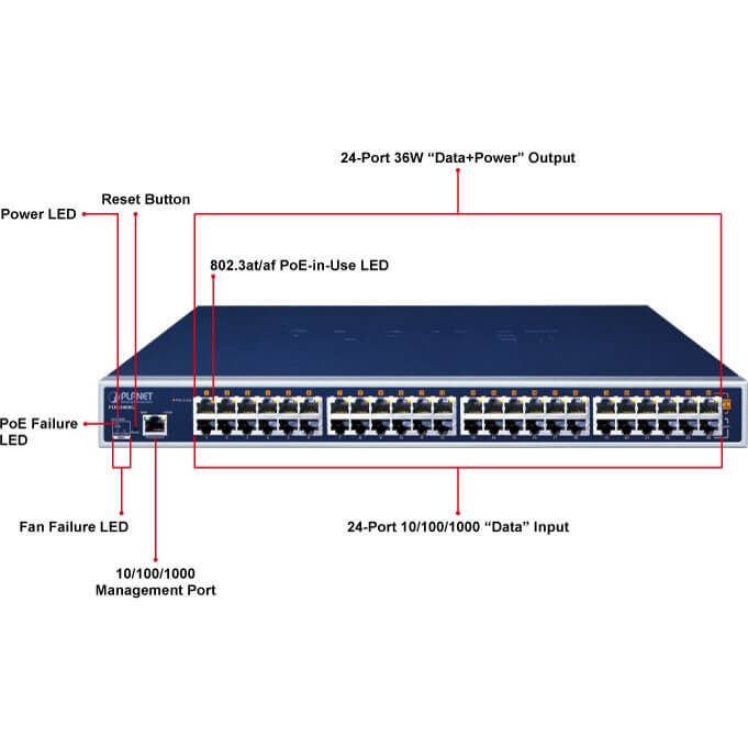 PlanetInjecteur PoE 24 ports Giga managé 400W