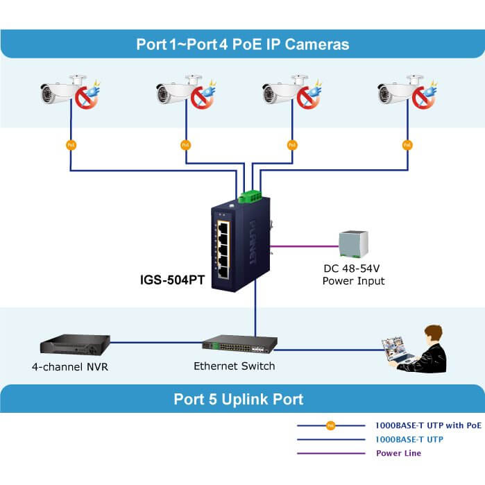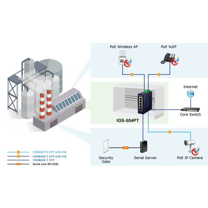 Konni - Planet Switch Indus 5 ports Giga dont 4 PoE at 120w - IGS-504PT