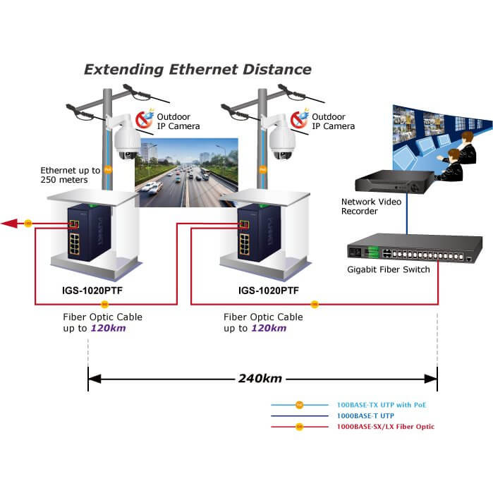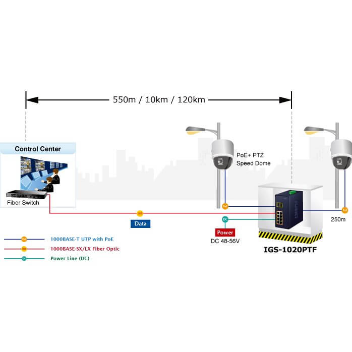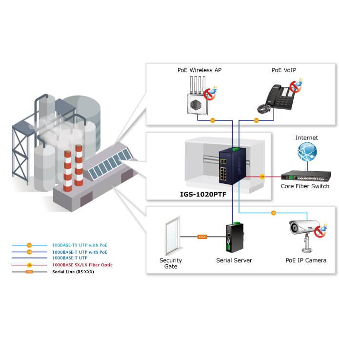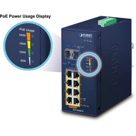 Konni - Planet Switch Indus 8 ports Giga PoE at 240W 2xSFP - IGS-1020PTF