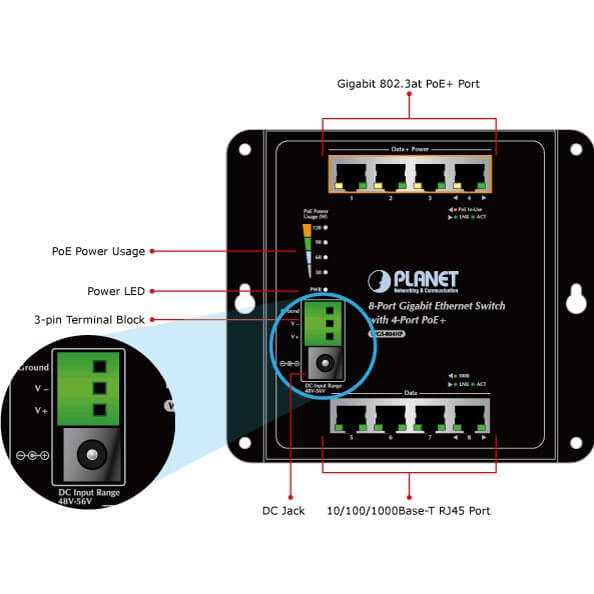 PlanetSwitch mural 8 Giga dont 4 PoE at IP30 -10/+60°