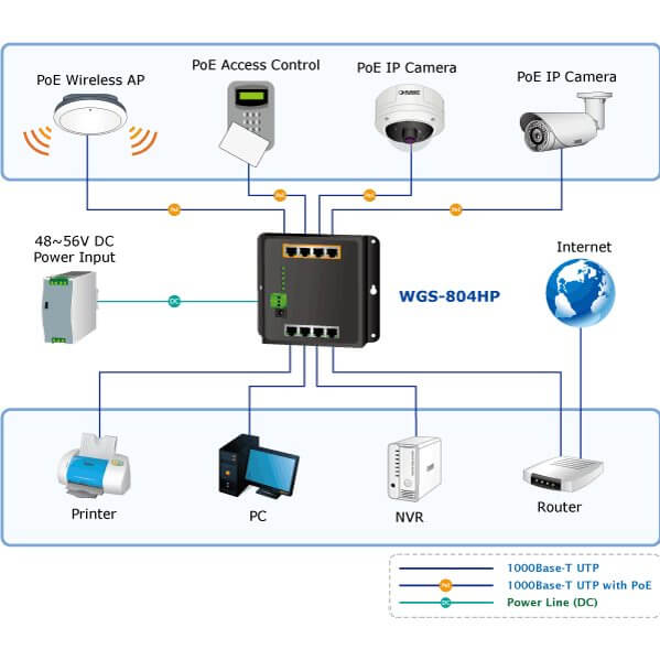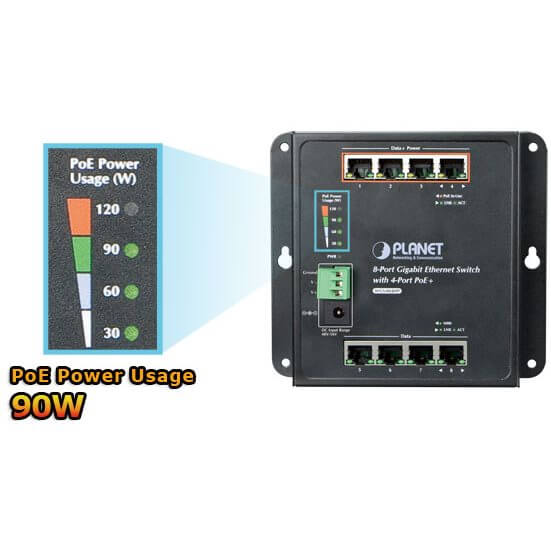 Konni - Planet Switch mural 8 ports Giga PoE at 120W - WGS-804HP