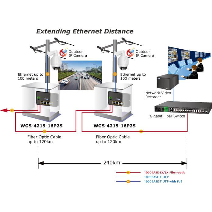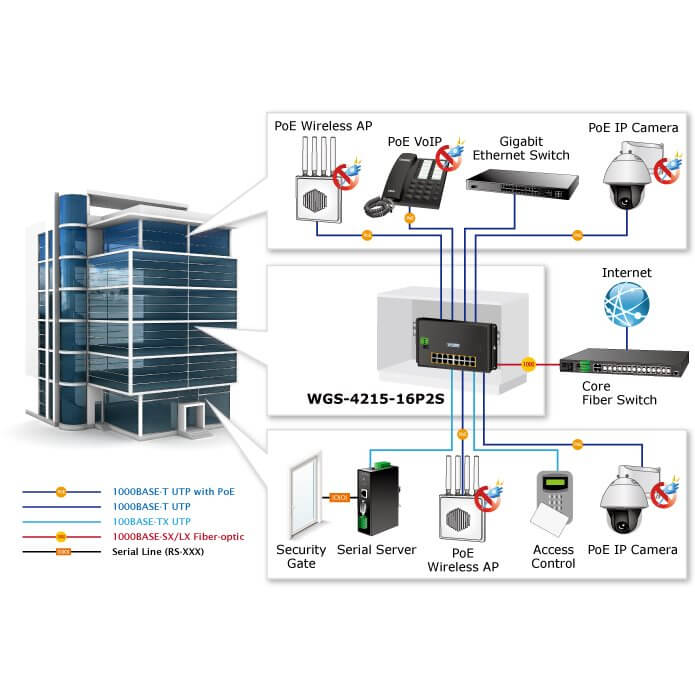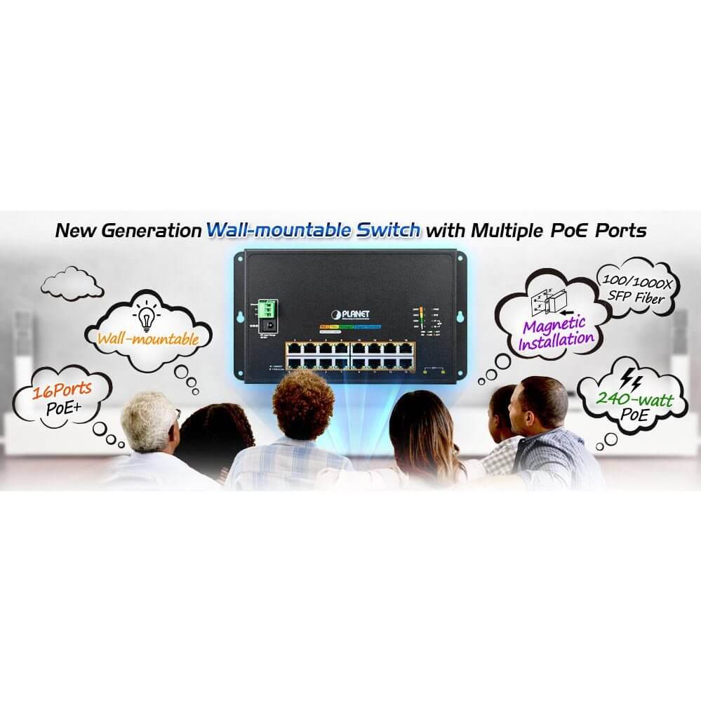 Konni - Planet Switch mural L2 16 ports Giga PoE at 240W 2xSFP - WGS-4215-16P2S