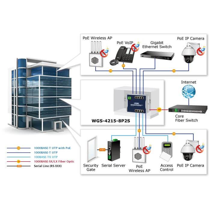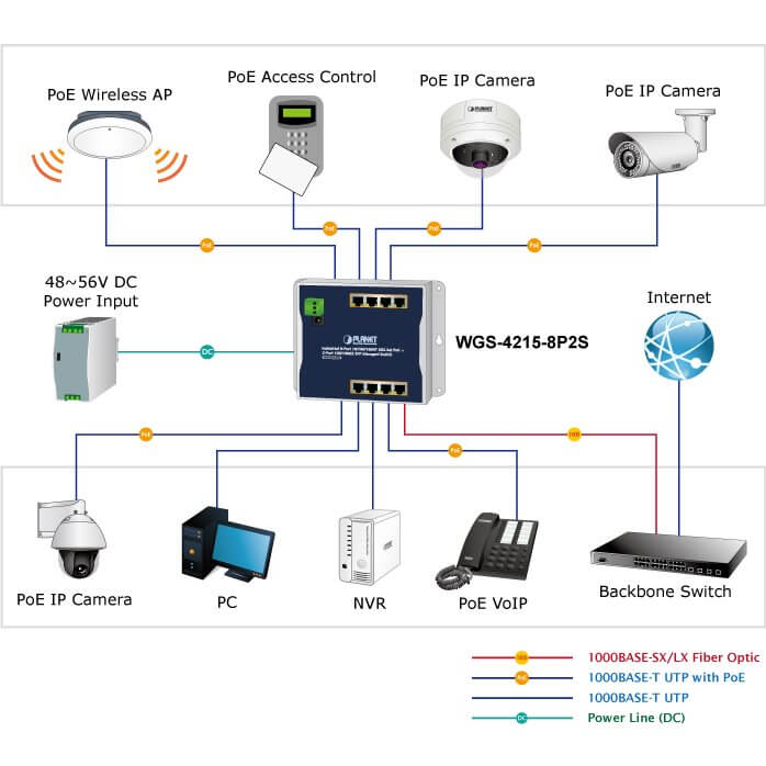 Konni - Planet Switch mural L2 8 ports Giga PoE at 200W 2xSFP - WGS-4215-8P2S