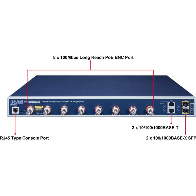 Konni - Planet Switch PoE 240W Long range 8x Coaxe + 2Giga + 2SFP - LRP-822CS