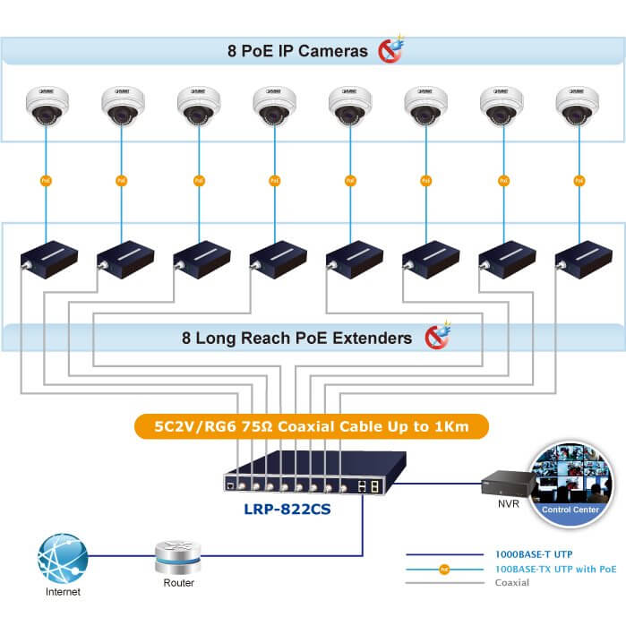 PlanetSwitch PoE 240W Long range 8x Coaxe + 2Giga + 2SFP