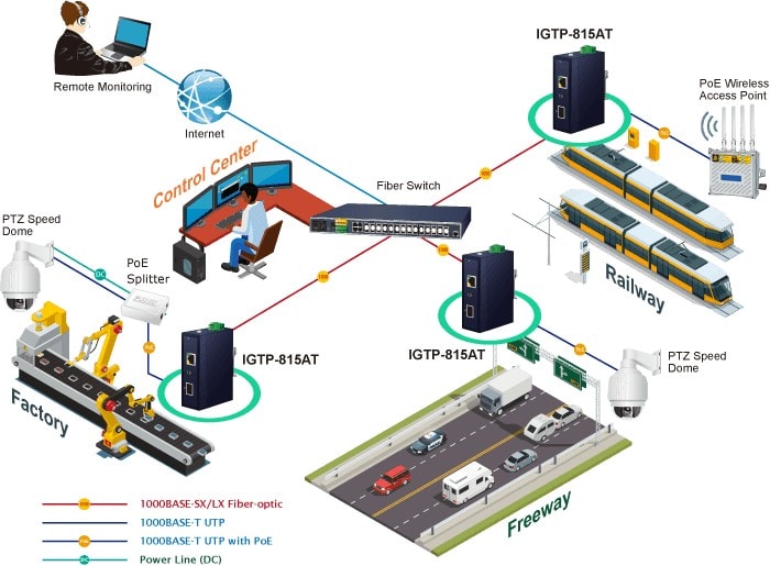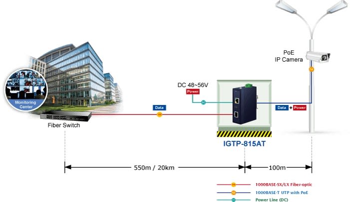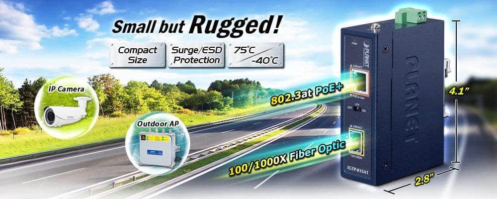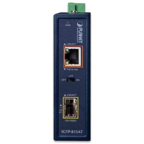 Konni - Planet Transceiver Indus compact 1xRJ45 PoE at 30W 1xSFP - IGTP-815AT