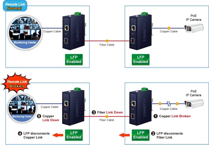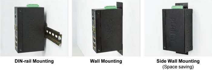 PlanetConvertisseur de média industriel + injecteur PoE 1 port Giga (10/100/1000BASE-T) PoE at / 1 port SFP Giga (100/1000BASE-X) (IP30) -40/+75°C