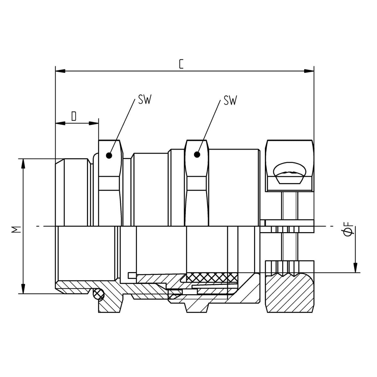 • taille de filetages métrique/PG - 32