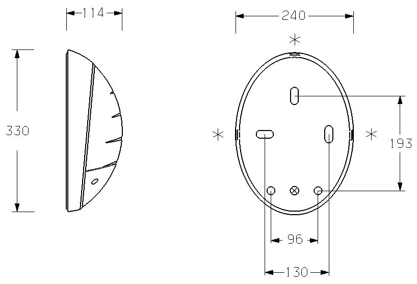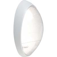 Applique murale fonctionnelle, ovale de dimensions 330x240mm – profondeur 114mm Corps et bloc optique polycarbonate, avec 3 prédécoupes latérales pour arrivée possible en goulotte 22x13mm