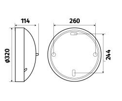 Hublot fonctionnel et polyvalent. Diamètre optimisé de 320mm et épaisseur 114mm (taille 2). Embase et diffuseur en 2 parties pour simplifier la pose. Corps polypropylène noir et diffuseur polycarbonate opale. Détection IR. Equipé d'une platine LED.