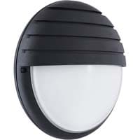 Hublot compact de diamètre 245mm, profondeur 106mm, Installation murale uniquement, finition blanc ou noir Appareil, avec visière et diffuseur polycarbonate (Anneau et diffuseur solidaires). IP54, IK10, classe II, 650 °C. Solution Antivandale : 4 p