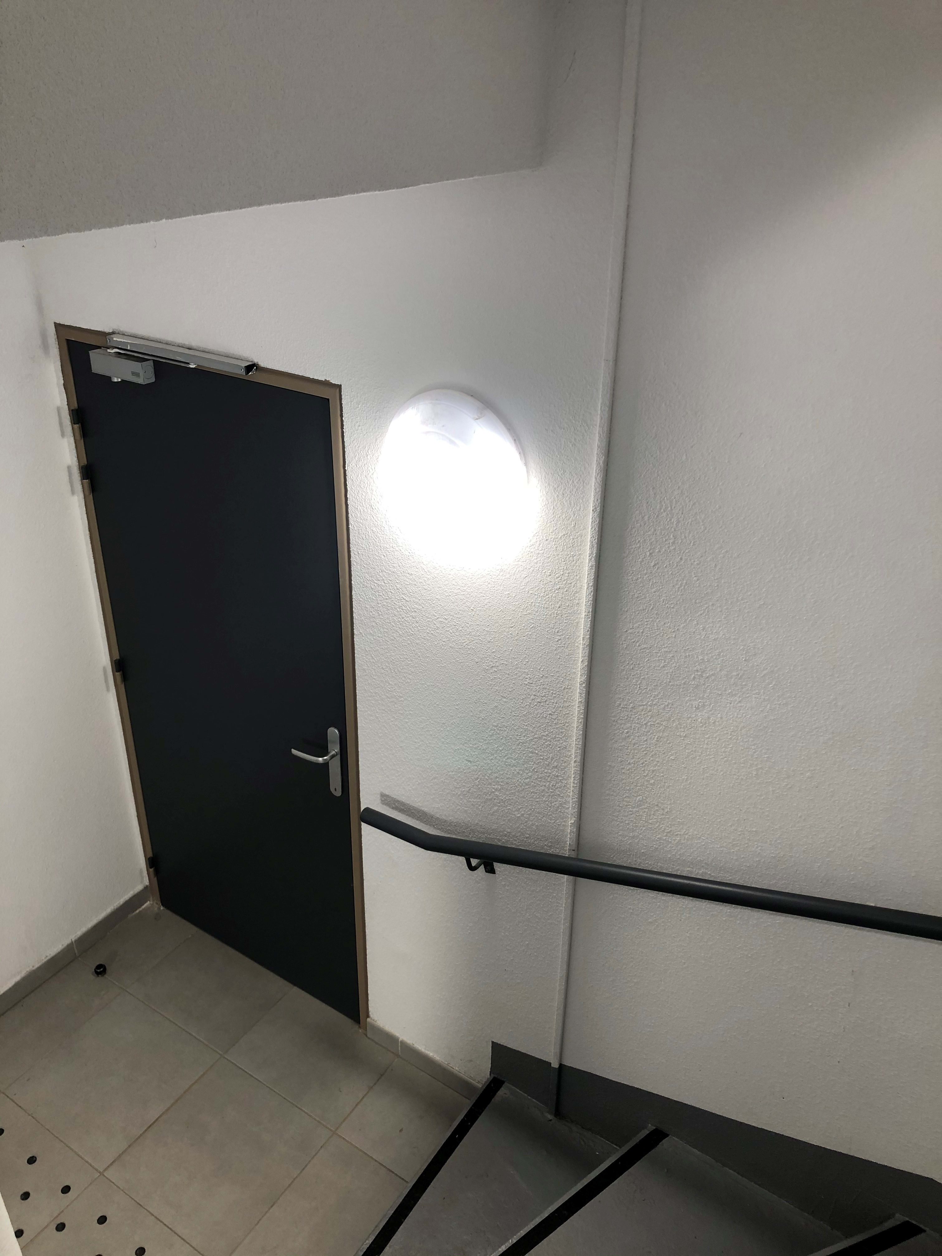Hublot fonctionnel en deux parties : embase et diffuseur en connexion push-in. Version flux orienté spécial escaliers. Détecteur HF. Corps polypropylène et diffuseur polycarbonate opale. Solution antivandale : capot diffuseur fermé par 3 vis To