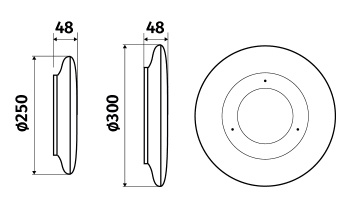 Hublot design extra-plat rond d'un diamètre de 250mm et d'épaisseur 48mm. . Fixation 1/4 de tour. Diffuseur et corps en polycarbonate opale. Source LED.