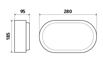 Hublot ovale ultra-résistant d'un diamètre de 280x185x90mm. Corps en aluminium et diffuseur polycarbonate opale. Hublot anti-vandale IK10. Source LED intégrée 850lm.
