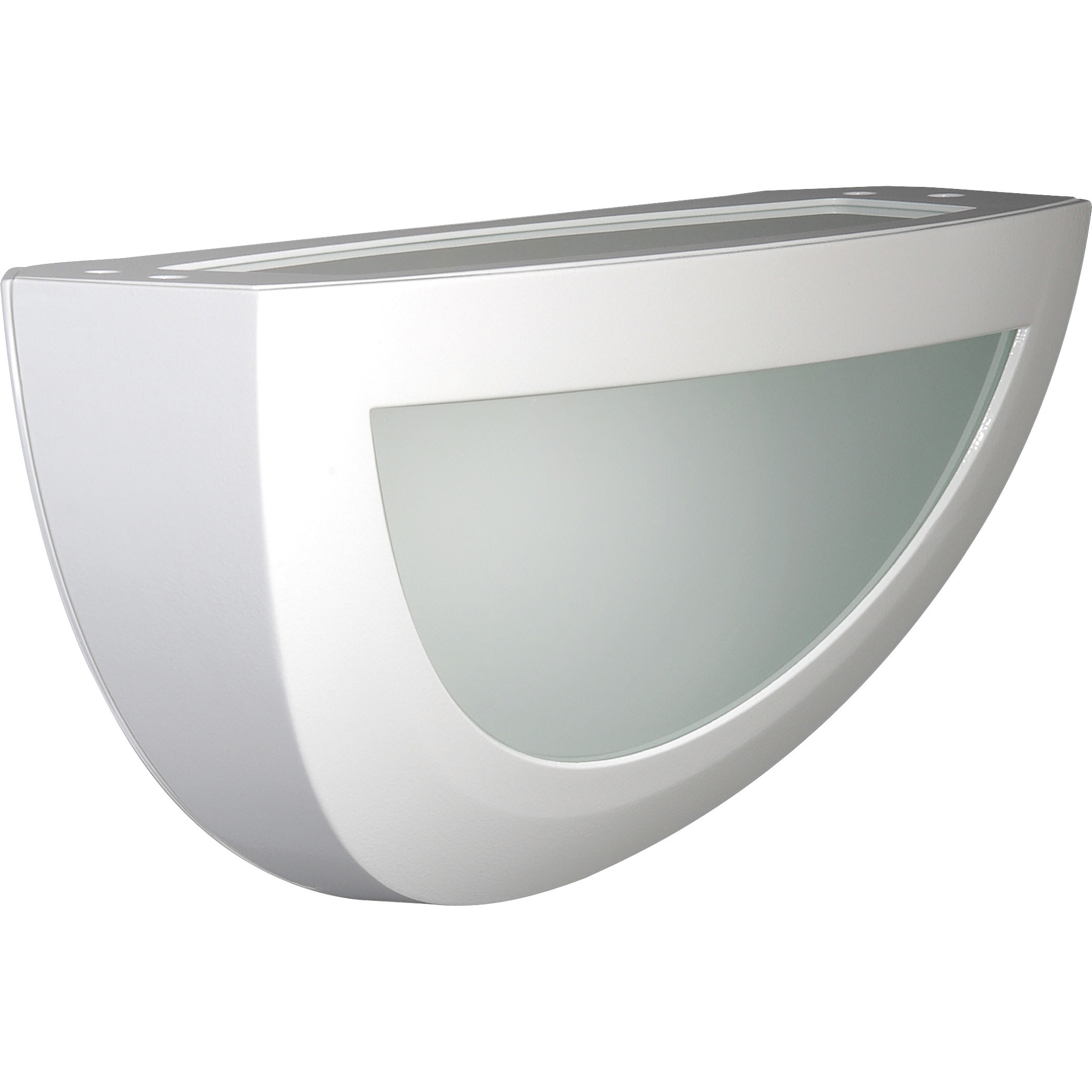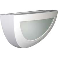 Applique décorative, longueur 372mm, profondeur 111,5mm, demi-lune avec bandeau pour éclairage indirect haut et bas. Deux orientations de flux pour moduler les ambiances. Diffuseur verre à double courbure.