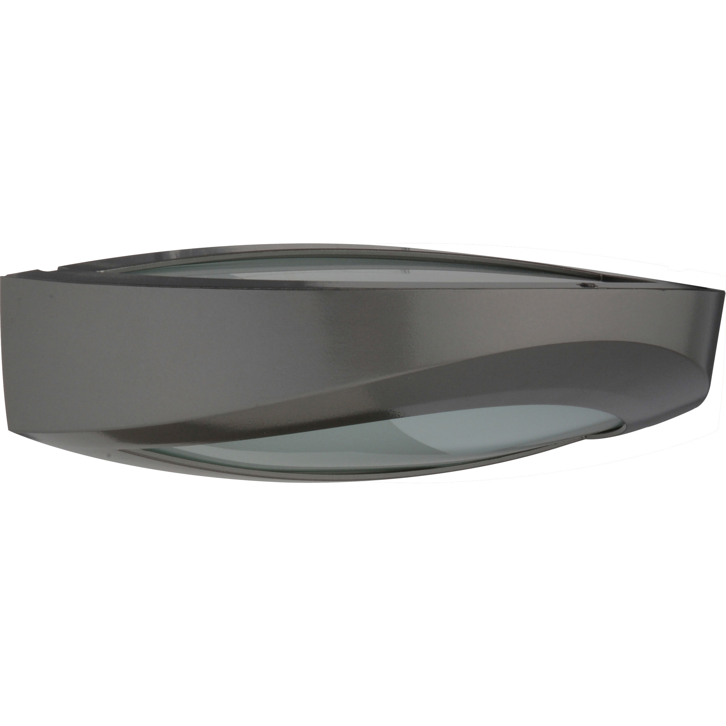 Applique décorative, longueur 372mm, profondeur 111,5mm, demi-lune avec bandeau pour éclairage indirect haut et bas. Deux orientations de flux pour moduler les ambiances. Diffuseur verre à double courbure.