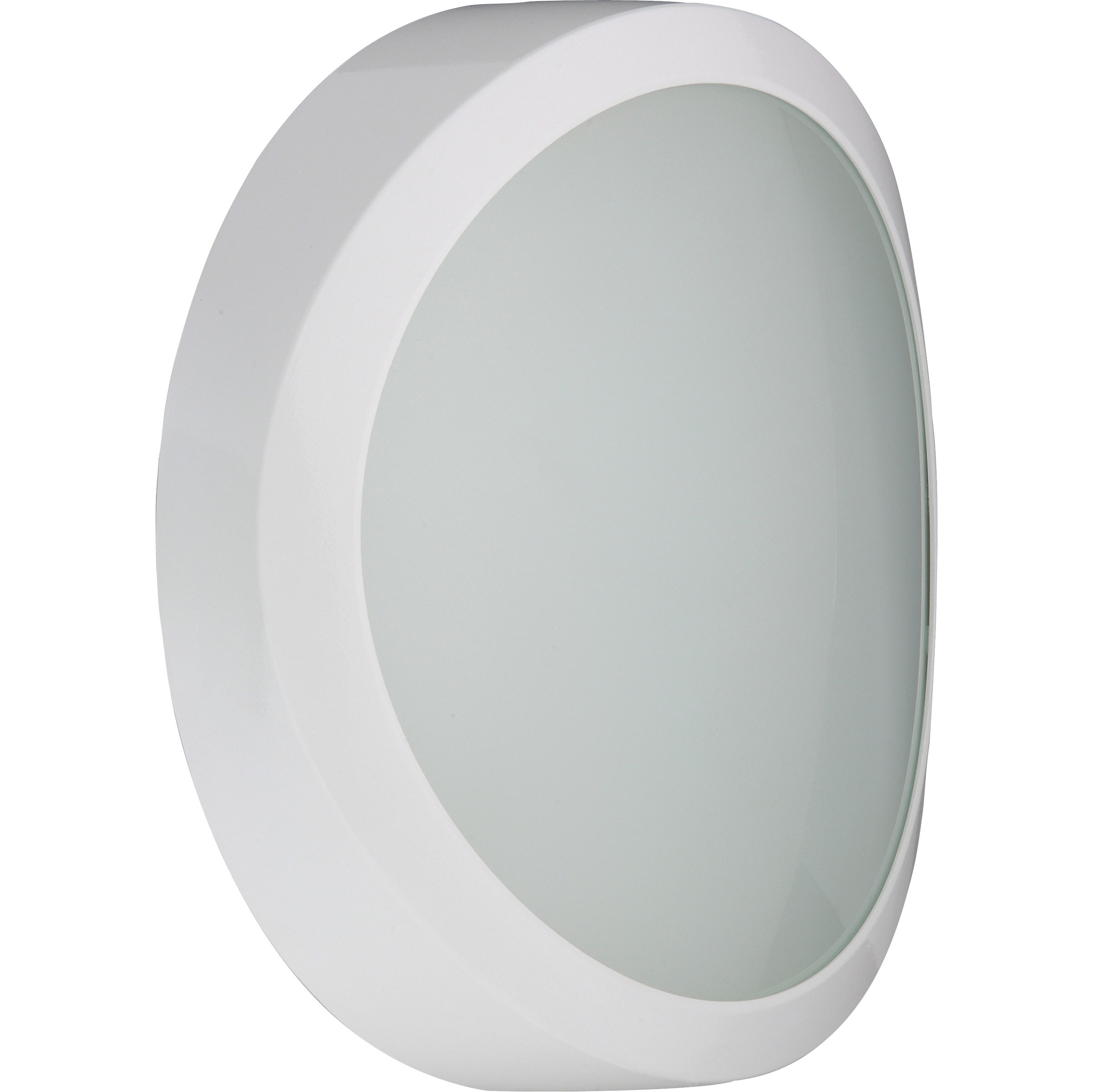 Hublot rond au caractère contemporain dont l’anneau est en polycarbonate lisse et brillanmmt, disponible en blanc ou gris. Diffuseur polycarbonate à double rayon de courbure, verrouillage du bloc optique par rotation ¼ de tour. Diam 350mm, prof 102