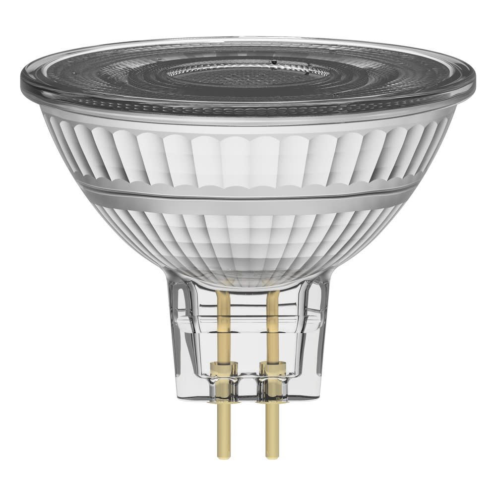 Lampes LED à réflecteur MR16, très basse tension, gradables, culot à broches. Caractéristiques du produit: Alternative LED aux lampes traditionnelles 12 V. Gradable (avec de nombreux gradateurs classiques, voir également www.ledvance.fr/dim). Lampes sans mercure. Avantages du produit: Très longue durée de vie allant jusqu'à 25 000 heures. Consommation d'énergie inférieure à celle des lampes à incandescence ou halogènes. Constance des couleurs grâce au tri fin des LED (binning). Remplacement aisé des lampes halogènes grâce au design compact et à une optique unique. Idéal pour un éclairage spot économique. Zones d'application: Commerces. Accueil. Musées, galeries d'art. Intérieurs résidentiels. Comme spotlight pour le balisage de chemins, de portes, d'escaliers, etc.. Éclairage spot pour l'accentuation. Panneau d'affichage et vitrines. Éclairage spot d'objets sensibles à la chaleur tels que aliments, usines, etc.. Utilisation en extérieur uniquement dans des luminaires d'extérieur appropriés. Conseils de sécurité: Ne touchez pas la lampe si elle est cassée.. Ne doit pas être utilisé si l'ampoule extérieure est défectueuse..