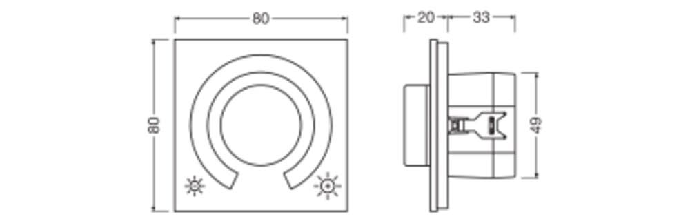 Variateur rotatif pour jusqu'à 25 luminaires, permet un éclairage Tunable White (blanc dynamique). Caractéristiques du produit: Contrôleur DALI-2 pour installation dans des boîtes d'encastrement standards. Variateur rotatif pour le contrôle manuel de la lumière. Jusqu'à 4 variateurs peuvent être connectés en parallèle pour configurer plusieurs points de contrôle. Synchronisation automatique entre les points de contrôle. Nombre de luminaires DALI par variateur : jusqu'à 25. Longueur du câble de commande DALI : jusqu'à 300 m. Avantages du produit: Fonctionnement simple et intuitif. Variation manuelle, commutation et enregistrement des réglages d'éclairage. Réglage individuel du niveau de luminosité et de la température de couleur. Cache en verre de haute qualité. Le comportement après une coupure de courant peut être défini. Fonctionnement sur secteur (mode actif) ou sur DALI (mode passif). Cadre de montage en surface en option disponible. Compatible avec le système de gestion d'éclairage LEDVANCE VIVARES DALI (luminaires LEDVANCE DALI). Zones d'application: Solution pièce individuelle avec jusqu'à 4 zones d'accès. Salles de réunion et de conférence. Restaurants. Éclairage de commerces. Domaines privés.