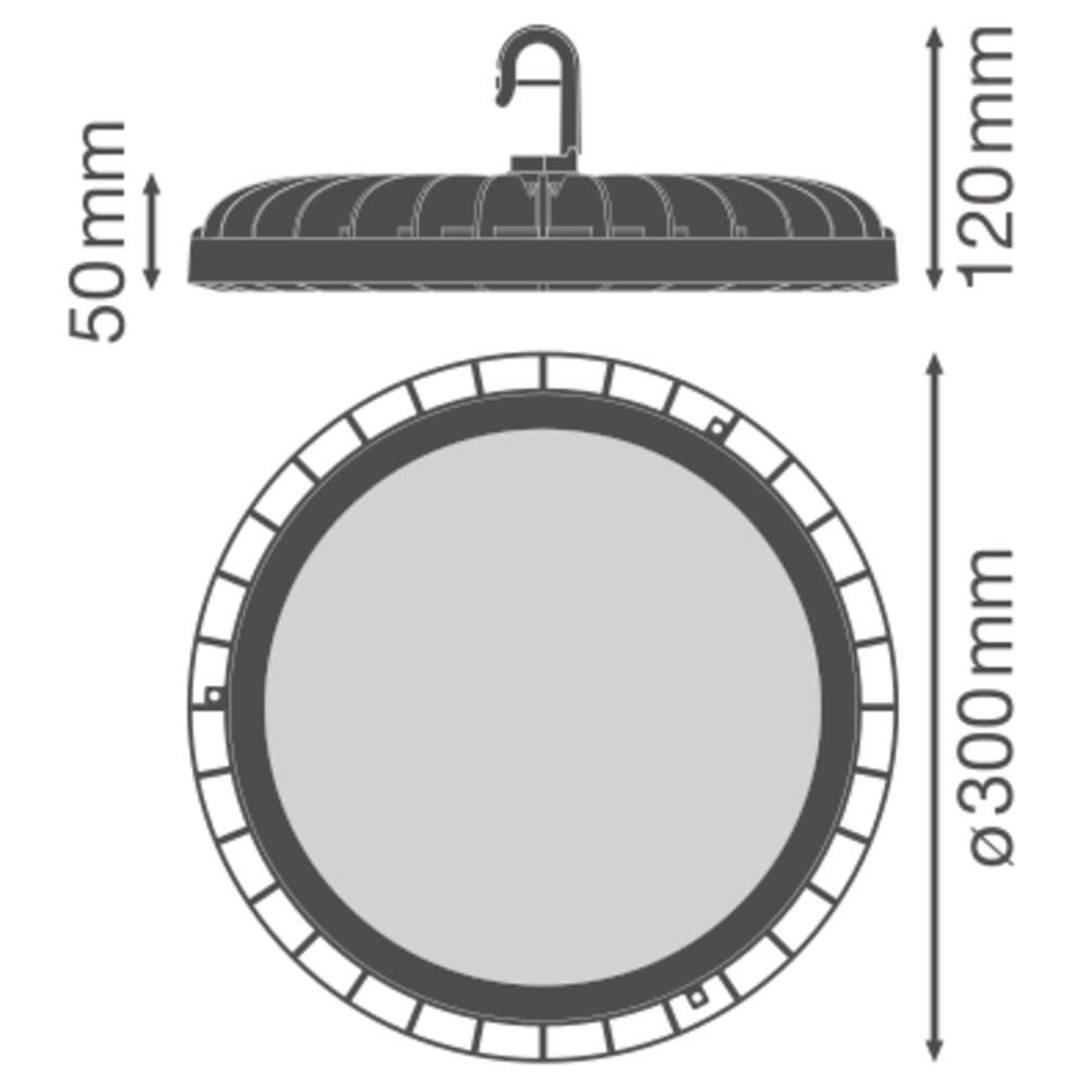 Luminaires High-Bay jusqu'à 165 lm/W. Caractéristiques du produit: Haute efficacité lumineuse : jusqu’à 165 lm/W. Boîtier en aluminium noir, couvercle en verre opale trempé. Multi Power et Multi lumen, puissance sélectionnable. Fonction multicolore : 4000 K, 5000 K et 6500 K. Durée de vie très longue (L70) : jusqu'à 100 000 h (à 25 °C). Température de fonctionnement : -20 à 50 °C. Grande homogénéité de couleur : ≤ sdcm. Type de protection : IP65. Avantages du produit: Design exclusif moderne. Économies d'énergie allant jusqu'à 60 % par rapport aux luminaires high bay conventionnels. Poids et dimensions optimisés grâce au design compact. Garantie de 5 ans. Zones d'application: Remplace les luminaires High Bay avec lampes mercure ou à décharge. Entrepôts. Halls de logistique. Industrie. Haut plafond (par exemple, dans les centres commerciaux, les aéroports, les immeubles commerciaux, les halls). Technique / Accessoires: Etrier disponible. Réflecteur disponible. Conseils de sécurité: Tous les branchements électriques doivent être effectués par une personne qualifiée.. Attention, risque de choc électrique.. Le câble ou cordon flexible externe de ce luminaire ne peut pas être remplacé ; si le cordon est endommagé, le luminaire doit être détruit.. Bornier non inclus. L'installation doit être effectuée par une personne qualifiée.. Afin de réduire le risque d'étranglement, le câblage flexible connecté à ce luminaire doit être fixé efficacement au mur si le câblage est à portée de main.. Produit de classe de protection I. Toutes les pièces métalliques conductrices d'électricité du boîtier qui peuvent absorber une tension pendant le fonctionnement ou pendant la maintenance en cas de défaut doivent être reliées en permanence au conducteur de protection..