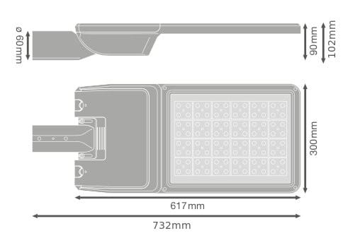 Luminaires pour l'éclairage public. Caractéristiques du produit: Température de couleur : 2 200 K, 2 700 K, 3 000 K, 4 000 K, 5 700 K. Distribution lumineuse optimisée pour les rues de largeur similaire à la hauteur du mât. Très longue durée de vie (L90/B10): jusqu'à 100 000 h (à 25 °C). Embout pour mâts de 48 à 60 mm inclus. Embout réglable pour un montage latérale et top. Réglage de l'angle d'inclinaison de +/- 15° sans ouverture du boîtier. Haute efficacité lumineuse : jusqu’à 180 lm/W. Température de fonctionnement : -40...50 °C. Protection contre les surtensions: jusqu'à 10 kV (L/N-PE). Classe de protection : I et II. Certificat : ENEC+, ENEC, ZD4i RoHS, SASO. Type de protection : IP66. Avantages du produit: Conception durable et sélection de composants de la plus haute qualité pour des performances durables. Câblage rapide et facile grâce à l'ouverture du boîtier sans outil et au bornier à bouton-poussoir. Grande uniformité de couleur. 5 températures de couleur disponibles, parfaitement adaptées pour éclairer des zones très diversifiés. Aucun flux lumineux au dessus de la ligne d'horizon (ULR 0%) lorsqu'il est monté à 0° d'inclinaison. Coupure du courant automatique à l'ouverture du boîtier. Garantie de 5 ans. Zones d'application: Éclairage urbain, éclairage de ville. Applications extérieures. Routes urbaines, routes industrielles, parkings. Classe M, C et P selon norme EN 13201. Zones piétonnes. Espaces publiques. Industrie. Conseils de sécurité: Tous les branchements électriques doivent être effectués par une personne qualifiée.. Attention, risque de choc électrique..