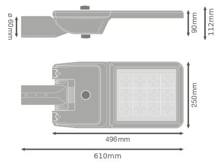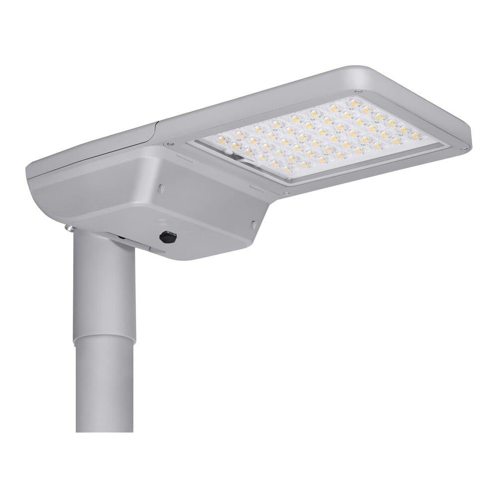 Luminaires pour l'éclairage public. Caractéristiques du produit: Température de couleur : 2 200 K, 2 700 K, 3 000 K, 4 000 K, 5 700 K. Distribution lumineuse optimisée pour les rues de largeur similaire à la hauteur du mât. Très longue durée de vie (L90/B10): jusqu'à 100 000 h (à 25 °C). Embout pour mâts de 48 à 60 mm inclus. Embout réglable pour un montage latérale et top. Réglage de l'angle d'inclinaison de +/- 15° sans ouverture du boîtier. Haute efficacité lumineuse : jusqu’à 180 lm/W. Température de fonctionnement : -40...50 °C. Protection contre les surtensions: jusqu'à 10 kV (L/N-PE). Classe de protection : I et II. Certificat : ENEC+, ENEC, ZD4i RoHS, SASO. Type de protection : IP66. Avantages du produit: Conception durable et sélection de composants de la plus haute qualité pour des performances durables. Câblage rapide et facile grâce à l'ouverture du boîtier sans outil et au bornier à bouton-poussoir. Grande uniformité de couleur. 5 températures de couleur disponibles, parfaitement adaptées pour éclairer des zones très diversifiés. Aucun flux lumineux au dessus de la ligne d'horizon (ULR 0%) lorsqu'il est monté à 0° d'inclinaison. Coupure du courant automatique à l'ouverture du boîtier. Garantie de 5 ans. Zones d'application: Éclairage urbain, éclairage de ville. Applications extérieures. Routes urbaines, routes industrielles, parkings. Classe M, C et P selon norme EN 13201. Zones piétonnes. Espaces publiques. Industrie. Conseils de sécurité: Tous les branchements électriques doivent être effectués par une personne qualifiée.. Attention, risque de choc électrique..