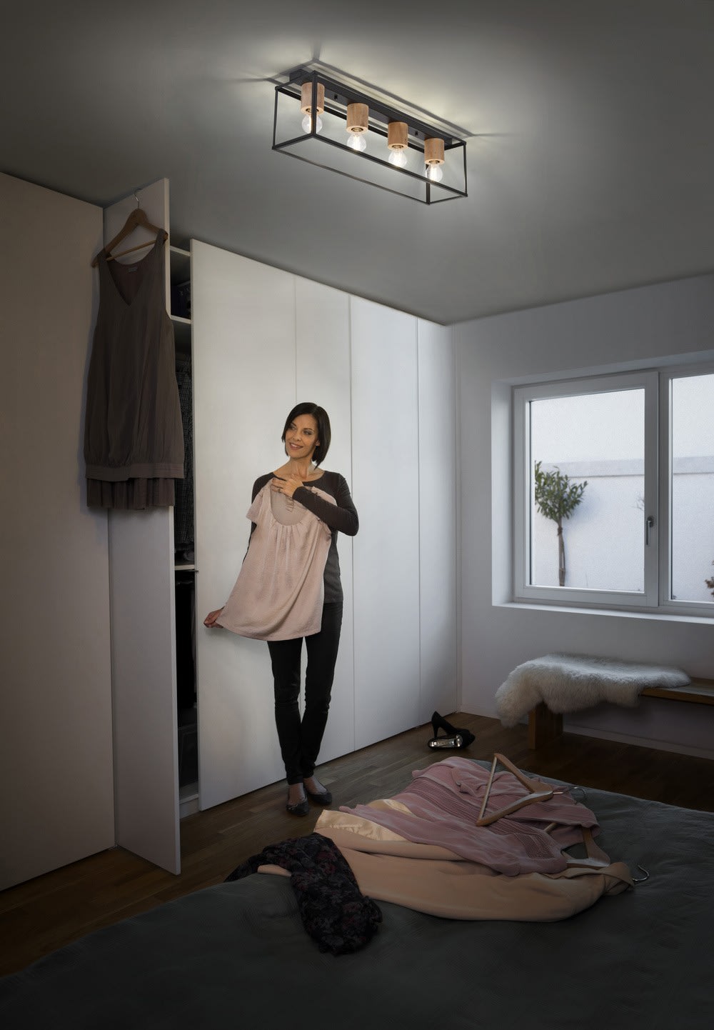 Luminaires décoratifs avec douille E27 métal et bois. Caractéristiques du produit: Matériau du boîtier : métal et bois. Luminaire décoratif. Avantages du produit: Design élégant. Grande flexibilité dans le choix de la source lumineuse grâce au culot E27. Zones d'application: Couloirs. Zones d'accueil. Salons. Chambres. Cuisines. Bureaux. Technique / Accessoires: Accessoires de montage et de connexion complets fournis. Conseils de sécurité: Tous les branchements électriques doivent être effectués par une personne qualifiée.. Attention, risque de choc électrique.. Produit de classe de protection I. Toutes les pièces métalliques conductrices d'électricité du boîtier qui peuvent absorber une tension pendant le fonctionnement ou pendant la maintenance en cas de défaut doivent être reliées en permanence au conducteur de protection.. Vérifiez l'adéquation du mur et du plafond. En cas de doute, demandez conseil à un professionnel..