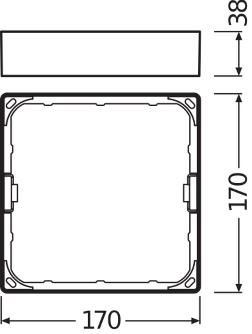Cadre de montage saillie, forme carrée. Caractéristiques du produit: Faible profondeur d'encastrement. Boitier robuste en polycarbonate. Accessoires de montage inclus. Avantages du produit: Entrée de câble sur le côté pour connexion électrique. Installation facile grâce au gabarit de perçage inclus. Zones d'application: Éclairage général. Espaces publiques. Escaliers. Couloirs. Foyers. Commerces. Conseils de sécurité: Tous les branchements électriques doivent être effectués par une personne qualifiée.. Produit de classe de protection I. Toutes les pièces métalliques conductrices d'électricité du boîtier qui peuvent absorber une tension pendant le fonctionnement ou pendant la maintenance en cas de défaut doivent être reliées en permanence au conducteur de protection..