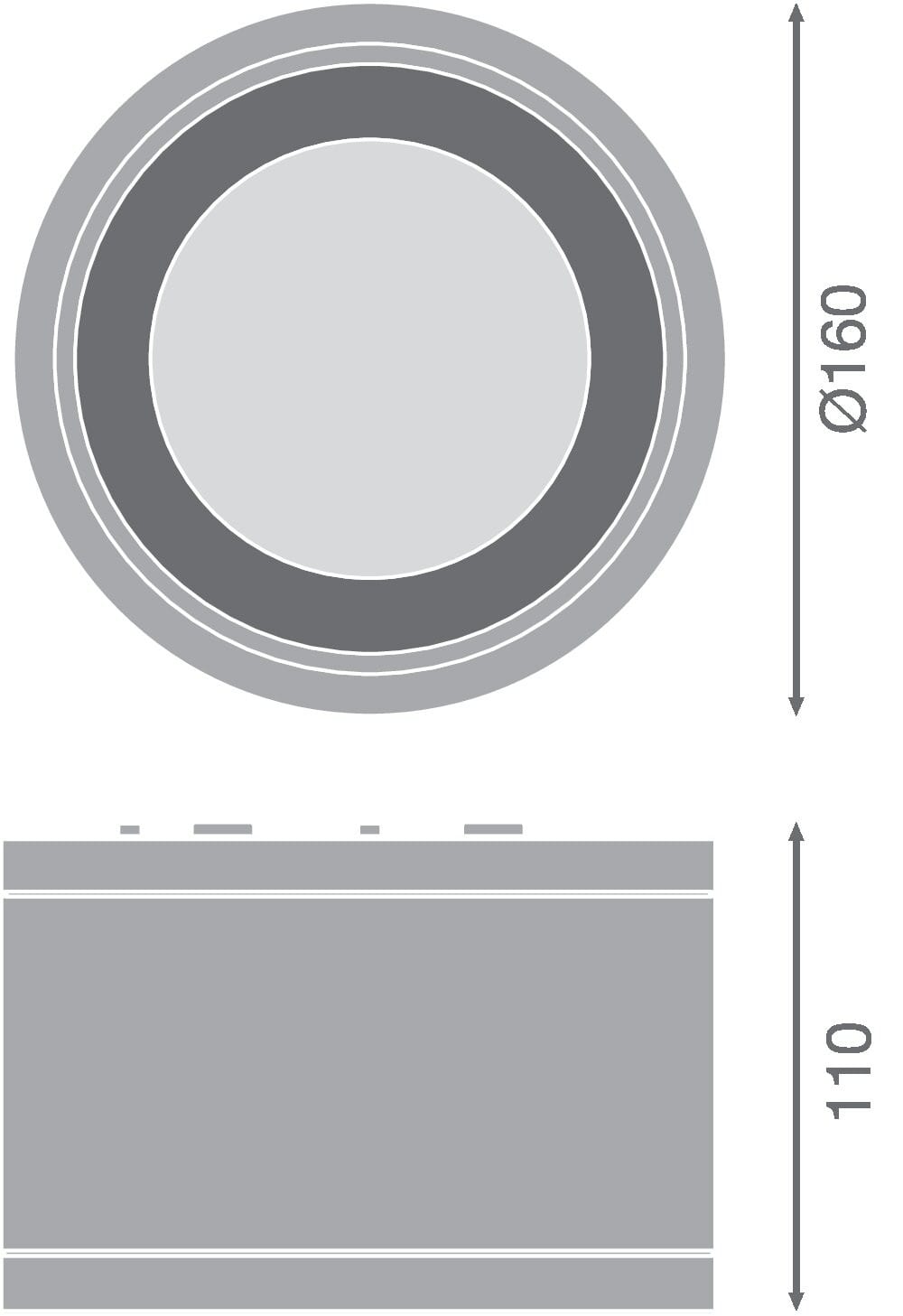 Corps en aluminium noir robuste. Classe I, 4000K, 110lm/W, 60 000h L80. Installation saillie simple et rapide grâce au bornier automatique avec repiquage. Température de fonctionnement : -30…+40°C. Dim: Ø160x110mm. Garantie 5 ans.