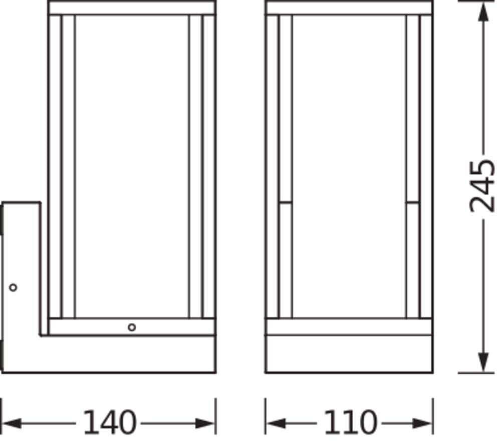 Timeless aluminum wall luminaire with E27 socket, glass diffusor and sensor option. Caractéristiques du produit: Suitable for smart applications thanks to compatibility with SMART+ lamps. Lower light smog, on-demand lighting (sensor version). Éclairage direct. Diffuseur en verre. Apparence du diffuseur: clair. Matériau du boîtier : aluminium. Couleur du corps : RAL 7016. Type de protection : IP44. Avantages du produit: Grande flexibilité dans le choix de la source lumineuse grâce au culot E27. Installation facile et rapide. Option avec détection de mouvement PIR et capteur de lumière du jour, assortie à la couleur du boîtier . Long-term energy and cost savings (sensor version). Zones d'application: Façades de bâtiments. Éclairage d'entrée. Patios, balcons. Éclairage de voies. Allées. Technique / Accessoires: Accessoires de montage et de connexion complets fournis. Aucune source de lumière incluse. Conseils de sécurité: Tous les branchements électriques doivent être effectués par une personne qualifiée.. Attention, risque de choc électrique.. Produit de classe de protection I. Toutes les pièces métalliques conductrices d'électricité du boîtier qui peuvent absorber une tension pendant le fonctionnement ou pendant la maintenance en cas de défaut doivent être reliées en permanence au conducteur de protection..