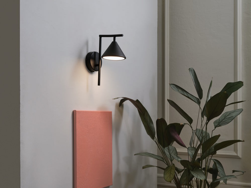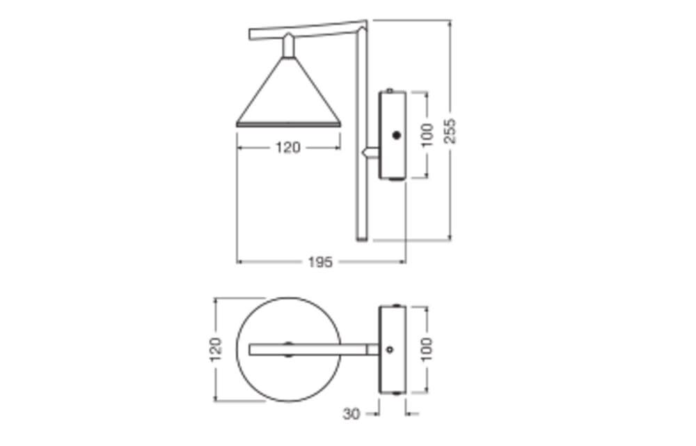 Applique murale décorative en acier noir avec source LED intégrée. Classe II, 40lm/W, IRC > 90. Bornier automatique. Visserie pour l'installation incluse. Dimensions (L x l x h) : 120 x 195 x 255 mm. Garantie 5 ans.