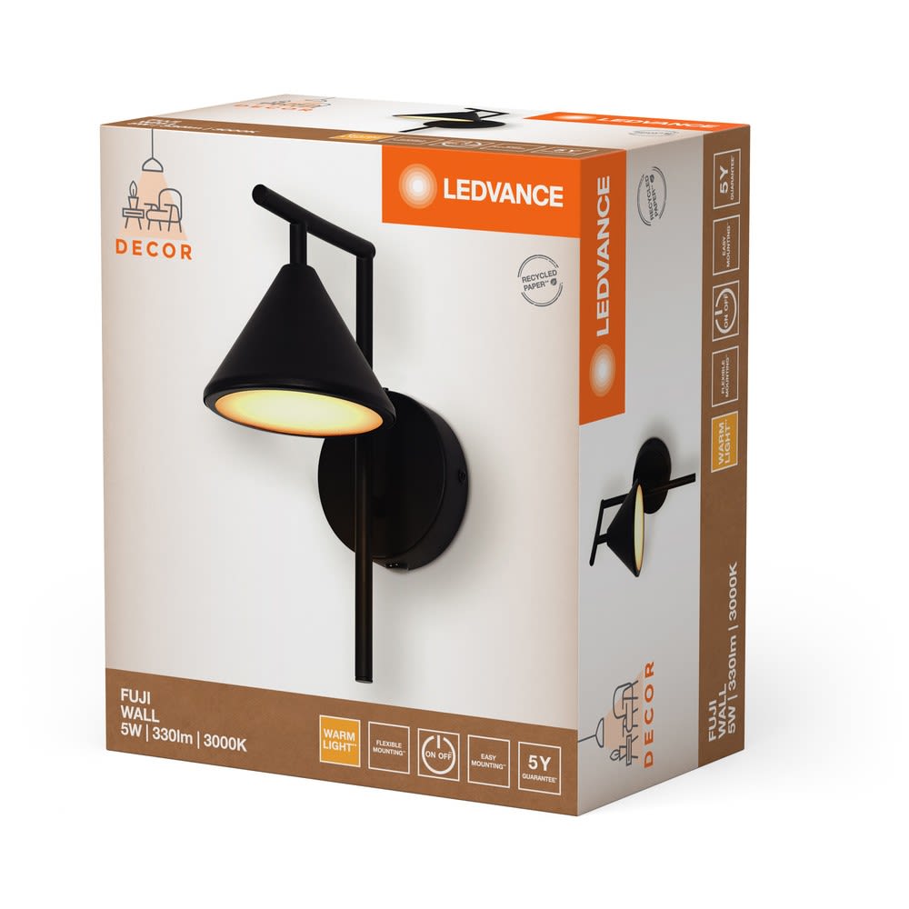 Ledvance - LDV FUJI Wall 5W/3000K 180lm - Applique murale noire blanc chaud - 841802