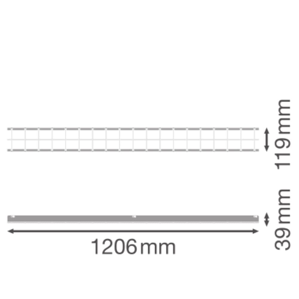 Grille de protection en acier laqué blanc à installer sur n'importe quel Low Bay Flex 1500 pour le rendre résistant aux chocs de balles. Perte de flux ~3% par rapport aux versions sans grille. Dimensions : 1206 x 119 x 39mm. Garantie 2 ans.