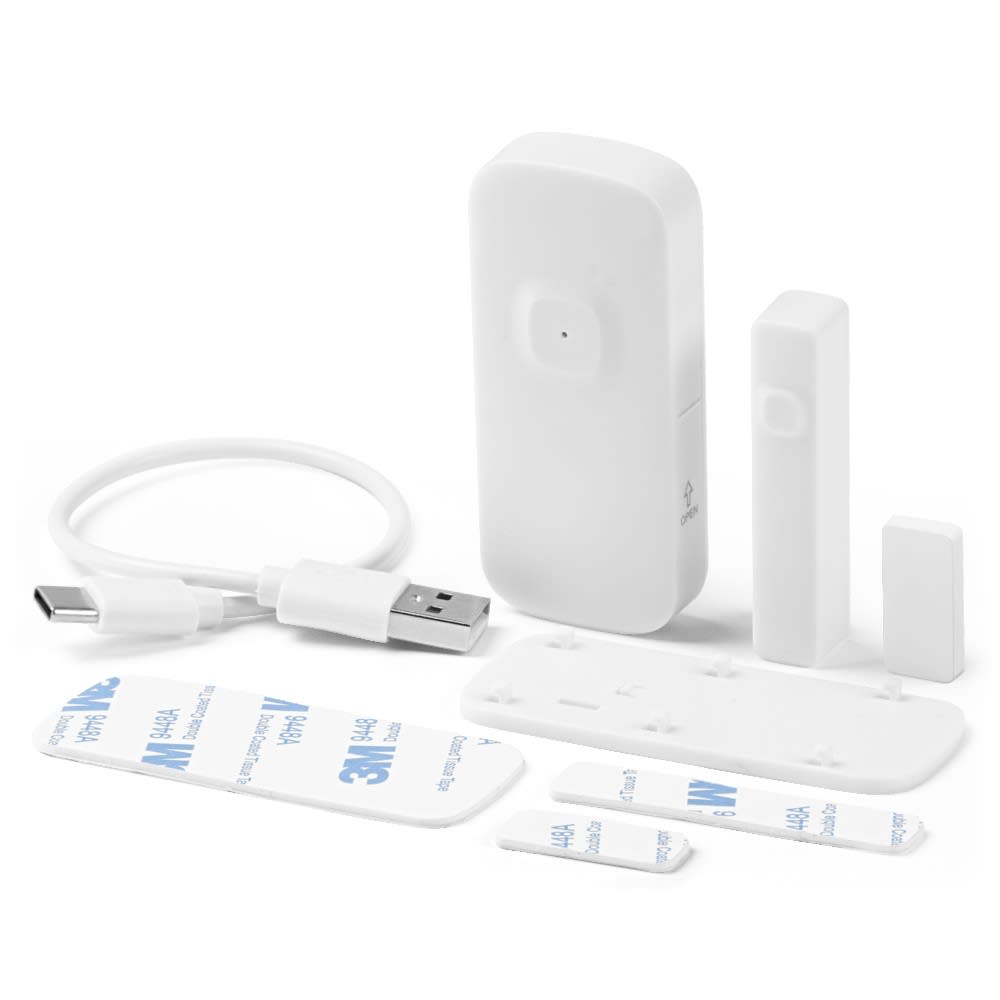 Capteur SMART+ avec technologie WIFI pour détecter les portes et fenêtres ouvertes. Caractéristiques du produit: Compatible avec Amazon Alexa et Google Home. Capteur intelligent sans fil pour l'état des fenêtres et des portes (ouverture/fermeture). Montage simple et flexible avec un adhésif et un choix de deux formes d'aimant en fonction de l'application. Batterie rechargeable et autonomie améliorée (20 mois d'autonomie par charge avec 5 détections par jour). Protocole réseau : Wi-Fi (2,4 GHz). Controllable via SMART+ App (with minimum Android 8.0 or iOS 14.0). Vérifiez le niveau de la batterie avec l'application SMART+ WiFi. Avantages du produit: Contrôle et automatisation faciles des produits SMART+ WiFi compatibles en fonction de l'état des contacts. Notification de changement de statut de contact. Surveille l'historique de l'état des contacts. Zones d'application: Maison intelligente - Intérieur. Partout où le contrôle et l'automatisation doivent être mis en œuvre dans des systèmes de maison intelligente compatibles. Technique / Accessoires: Batterie rechargeable intégrée et chargement facile via USB-C. Câble de charge et kit d'installation inclus. For control via SMART+ App, a smartphone or tablet is required (with minimum Android 8.0 or iOS 14.0). Conseils de sécurité: Si le compartiment à piles (le cas échéant) ne se ferme pas correctement, cessez d'utiliser le produit et tenez-le hors de portée des enfants. Si vous pensez que des piles ont pu être avalées ou placées à l'intérieur d'une partie du corps, consultez immédiatement un médecin.. A éviter : Température ambiante maximale : +35 °C. Remplacement d'une batterie par un type incorrect qui peut neutraliser la sécurité (par exemple, dans le cas de certains types de batteries au lithium). Altitude pendant le fonctionnement : 2000 m. Jeter une batterie au feu ou dans un four chaud, ou écraser ou couper mécaniquement une batterie, ce qui peut entraîner une explosion..