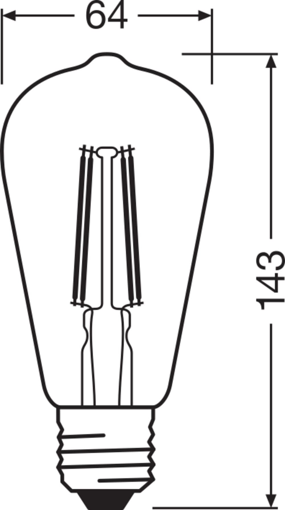 Ampoule à filament forme Edison avec technologie Wi-Fi. Caractéristiques du produit: Contrôlable via l'application LEDVANCE SMART+ (avec Android 8.0 ou iOS 14.0 minimum). Contrôlable via Google Assistant et Amazon Alexa possible. Protocole réseau : WiFi. Gradable. Durée de vie jusqu'à 15 000 h. Avantages du produit: Contrôle sans fil via l'application. Facile à installer et à utiliser. Ne contient pas de mercure. Consommation d'énergie inférieure à celle des lampes à incandescence ou halogènes. Zones d'application: Éclairage général. Intérieurs résidentiels. Professionnels (hôtels, bars, boutiques, etc.). Utilisation en extérieur uniquement dans des luminaires d'extérieur appropriés. Technique / Accessoires: Pour le contrôle via l'application LEDVANCE SMART+, un smartphone ou une tablette est requis (avec Android 8.0 ou iOS 14.0 minimum). Conseils de sécurité: Ne touchez pas la lampe si elle est cassée.. Ne doit pas être utilisé si l'ampoule extérieure est défectueuse..