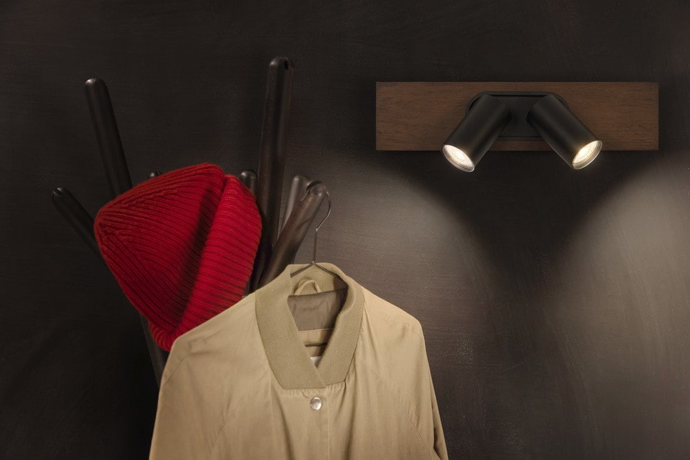 Plafonniers en matériaux mixtes avec spots GU10 orientables et gradables. Caractéristiques du produit: La famille de luminaires comprend quatre versions avec jusqu'à 4 têtes de spot. Matériau du boîtier : métal et bois. Interrupteur marche/arrêt sur la version à 1 tête pour une utilisation facile. Têtes ajustables. Avantages du produit: Apparence et sensation de haute qualité. Corps de haute qualité avec surface blanche ou noire mate. Flexible grâce aux lampes LED remplaçables. Lampe OSRAM à intensité variable incluse. Montage simple. Zones d'application: Applications intérieures. Couloirs, halls d'entrée, cages d'escalier, pièces à vivre, sous-sols. Cuisines, espaces de travail. Montage au plafond et au mur. Technique / Accessoires: Accessoires de montage et de connexion complets fournis. Conseils de sécurité: Tous les branchements électriques doivent être effectués par une personne qualifiée.. Attention, risque de choc électrique.. Produit de classe de protection I. Toutes les pièces métalliques conductrices d'électricité du boîtier qui peuvent absorber une tension pendant le fonctionnement ou pendant la maintenance en cas de défaut doivent être reliées en permanence au conducteur de protection..
