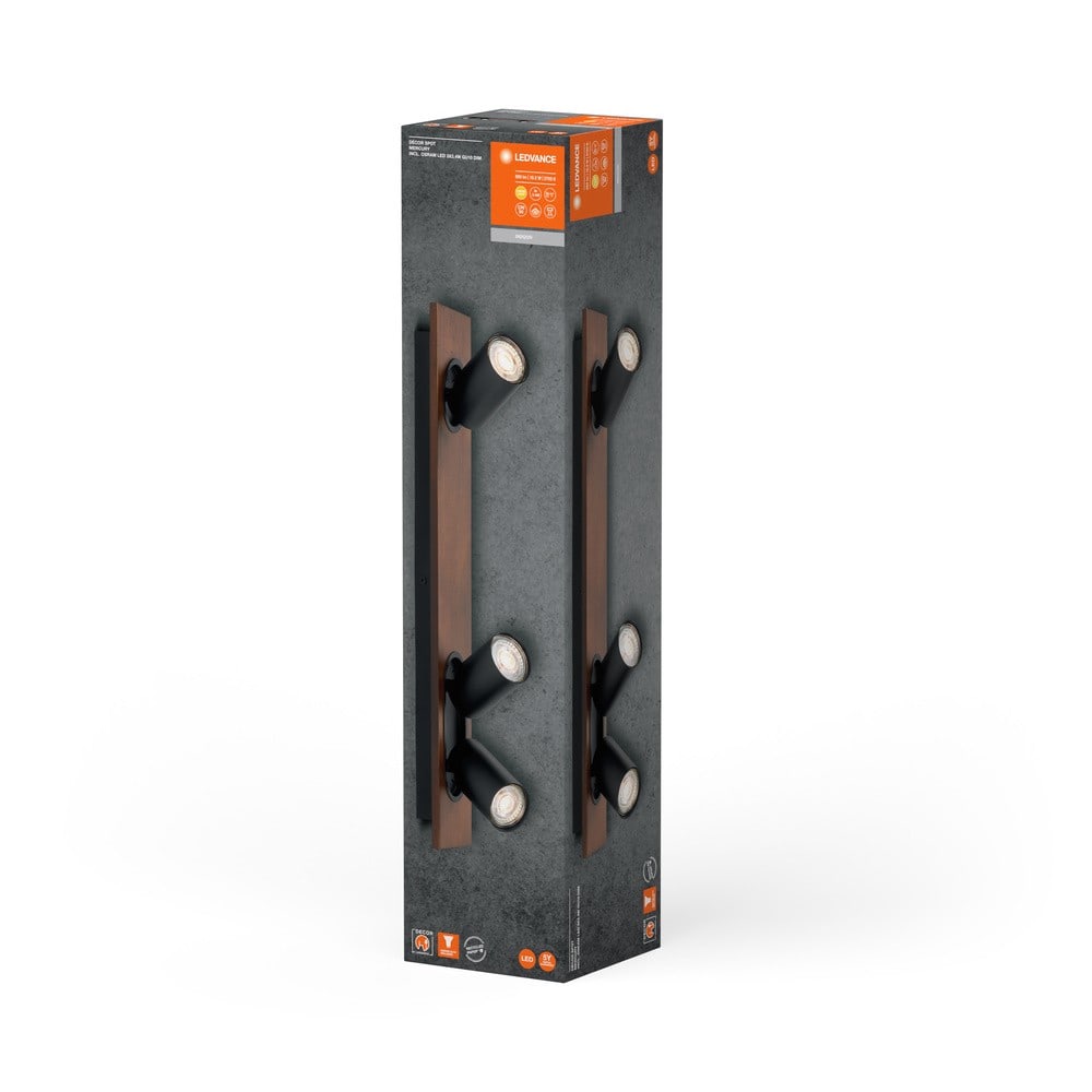 Plafonniers en matériaux mixtes avec spots GU10 orientables et gradables. Caractéristiques du produit: La famille de luminaires comprend quatre versions avec jusqu'à 4 têtes de spot. Matériau du boîtier : métal et bois. Interrupteur marche/arrêt sur la version à 1 tête pour une utilisation facile. Têtes ajustables. Avantages du produit: Apparence et sensation de haute qualité. Corps de haute qualité avec surface blanche ou noire mate. Flexible grâce aux lampes LED remplaçables. Lampe OSRAM à intensité variable incluse. Montage simple. Zones d'application: Applications intérieures. Couloirs, halls d'entrée, cages d'escalier, pièces à vivre, sous-sols. Cuisines, espaces de travail. Montage au plafond et au mur. Technique / Accessoires: Accessoires de montage et de connexion complets fournis. Conseils de sécurité: Tous les branchements électriques doivent être effectués par une personne qualifiée.. Attention, risque de choc électrique.. Produit de classe de protection I. Toutes les pièces métalliques conductrices d'électricité du boîtier qui peuvent absorber une tension pendant le fonctionnement ou pendant la maintenance en cas de défaut doivent être reliées en permanence au conducteur de protection..