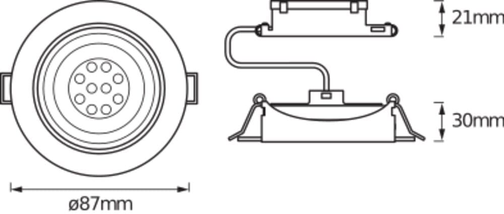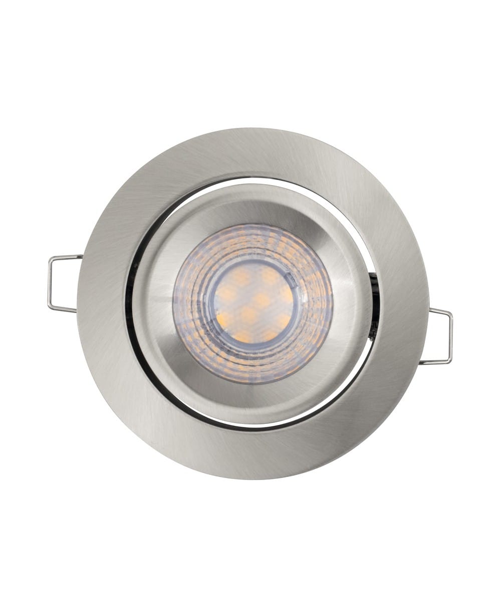 Spot encastré avec fonction de gradation progressive via un interrupteur mural. Caractéristiques du produit: Avec module LED et alimentation intégrés. Faible profondeur d'encastrement. Jeu de trois luminaires. Tête pivotante. Matériau du boîtier : aluminium. Avantages du produit: Connecteur rapide WAGO pour une installation facile et sécurisée. Design intemporel. Montage simple. Connexion en ligne continue allant jusqu'à 10 luminaires. Zones d'application: Applications intérieures. Couloirs, halls d'entrée, cages d'escalier, pièces à vivre, sous-sols. Plafonds suspendus. Technique / Accessoires: Accessoires de montage et de connexion complets fournis. Conseils de sécurité: Tous les branchements électriques doivent être effectués par une personne qualifiée.. Attention, risque de choc électrique.. Les luminaires ne conviennent pas pour être recouverts de matériaux à isolation thermique..