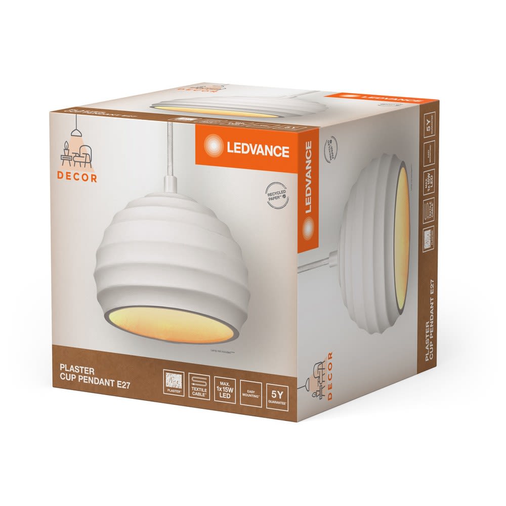 Ledvance - LDV Suspension Plaster CUP à culot E27 blanche - lampe non incluse - 838468