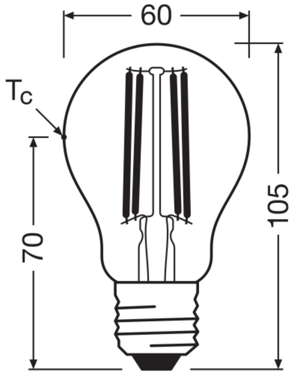 Lampes LED gradables, forme d'ampoule classique, CLASSE D'EFFICACITÉ ÉNERGÉTIQUE A. Caractéristiques du produit: Lampes LED disponibles pour tension secteur. Efficacité lumineuse : jusqu'à 210 lm/W. Ouverture du faisceau : jusqu'à 300°. Très longue durée de vie allant jusqu'à 30 000 heures. Nombre de cycles de commutation extrêmement élevé 500 000. Gradable. Avantages du produit: Lampes avec technologie de « filament » LED innovante. Faible consommation d'énergie. Conception, dimensions, flux lumineux comparables à une lampe halogène. Allumage instantané. Effets de scintillement et stroboscopiques réduits. Zones d'application: Idéal pour les installations décoratives. Applications domestiques. Éclairage général. Utilisation en extérieur uniquement dans des luminaires d'extérieur appropriés. Conseils de sécurité: Ne touchez pas la lampe si elle est cassée.. Ne doit pas être utilisé si l'ampoule extérieure est défectueuse..