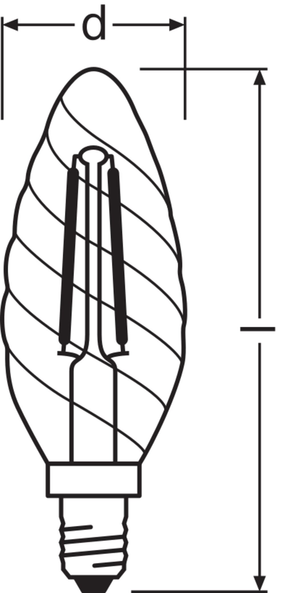 Lampes LED à intensité variable, forme de bougie classique, IRC90, avec une composante bleue fortement réduite. Caractéristiques du produit: Lampes LED disponibles pour tension secteur. Ouverture du faisceau : jusqu'à 300°. Gradable. Indice de rendu des couleurs Ra: ≥ 90. Avantages du produit: Lampes avec technologie de « filament » LED innovante. Conception, dimensions, flux lumineux comparables à une lampe halogène. Spectre de la lumière naturelle avec un excellent rendu des couleurs​ (IRC >90). Réduction significative de la lumière bleue. Meilleur confort visuel et réduction de la fatigue. Consommation d'énergie inférieure à celle des lampes à incandescence ou halogènes. Allumage instantané. Effets de scintillement et stroboscopiques réduits. Zones d'application: Idéal pour les installations décoratives. Applications domestiques. Éclairage général. Utilisation en extérieur uniquement dans des luminaires d'extérieur appropriés.