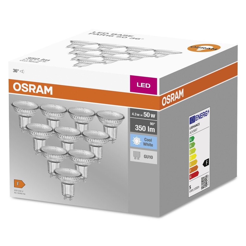 Ledvance - LED SPOT OSRAM BASE x10 PAR16 50 840 36° 4,3W GU10 350lm Verre - Lot de 10 - 036703
