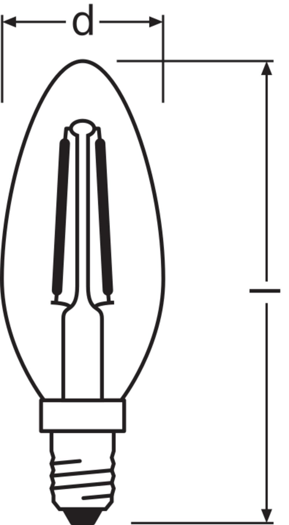Lampes LED, forme flamme. Caractéristiques du produit: Lampes LED professionnelles pour tension secteur. Non gradable. Bonne qualité de la lumière ; indice de rendu des couleurs Ra: ≥ 80; chromaticité constante. Durée de vie jusqu'à 15 000 h. Lampe en verre. Avantages du produit: Lampes avec technologie de « filament » LED innovante. Conception, dimensions, flux lumineux comparables à une lampe à incandescence classique ou halogène. Pas d'émission d'UV ni d'IR dans le faisceau lumineux. Allumage instantané. Puissance thermique plus faible (par rapport au produit de référence standard). Peut remplacer facilement les lampes standard. Consommation d'énergie inférieure à celle des lampes à incandescence ou halogènes. Zones d'application: Idéal pour les installations décoratives. Applications domestiques. Éclairage général. Utilisation en extérieur uniquement dans des luminaires d'extérieur appropriés. Conseils de sécurité: Ne touchez pas la lampe si elle est cassée.. Ne doit pas être utilisé si l'ampoule extérieure est défectueuse..