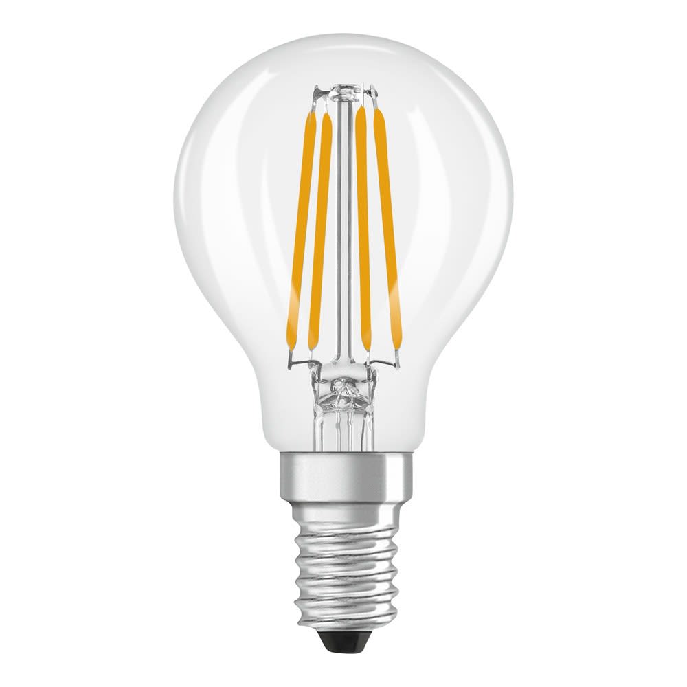 Lampes LED, forme classique de mini-ampoule, CLASSE D'EFFICACITÉ ÉNERGÉTIQUE A. Caractéristiques du produit: Lampes LED disponibles pour tension secteur. Efficacité lumineuse : jusqu'à 210 lm/W. Ouverture du faisceau : jusqu'à 300°. Très longue durée de vie allant jusqu'à 30 000 heures. Nombre de cycles de commutation extrêmement élevé 500 000. Avantages du produit: Lampes avec technologie de « filament » LED innovante. Faible consommation d'énergie. Conception, dimensions, flux lumineux comparables à une lampe halogène. Allumage instantané. Effets de scintillement et stroboscopiques réduits. Zones d'application: Idéal pour les installations décoratives. Applications domestiques. Éclairage général. Utilisation en extérieur uniquement dans des luminaires d'extérieur appropriés. Conseils de sécurité: Ne touchez pas la lampe si elle est cassée.. Ne doit pas être utilisé si l'ampoule extérieure est défectueuse..