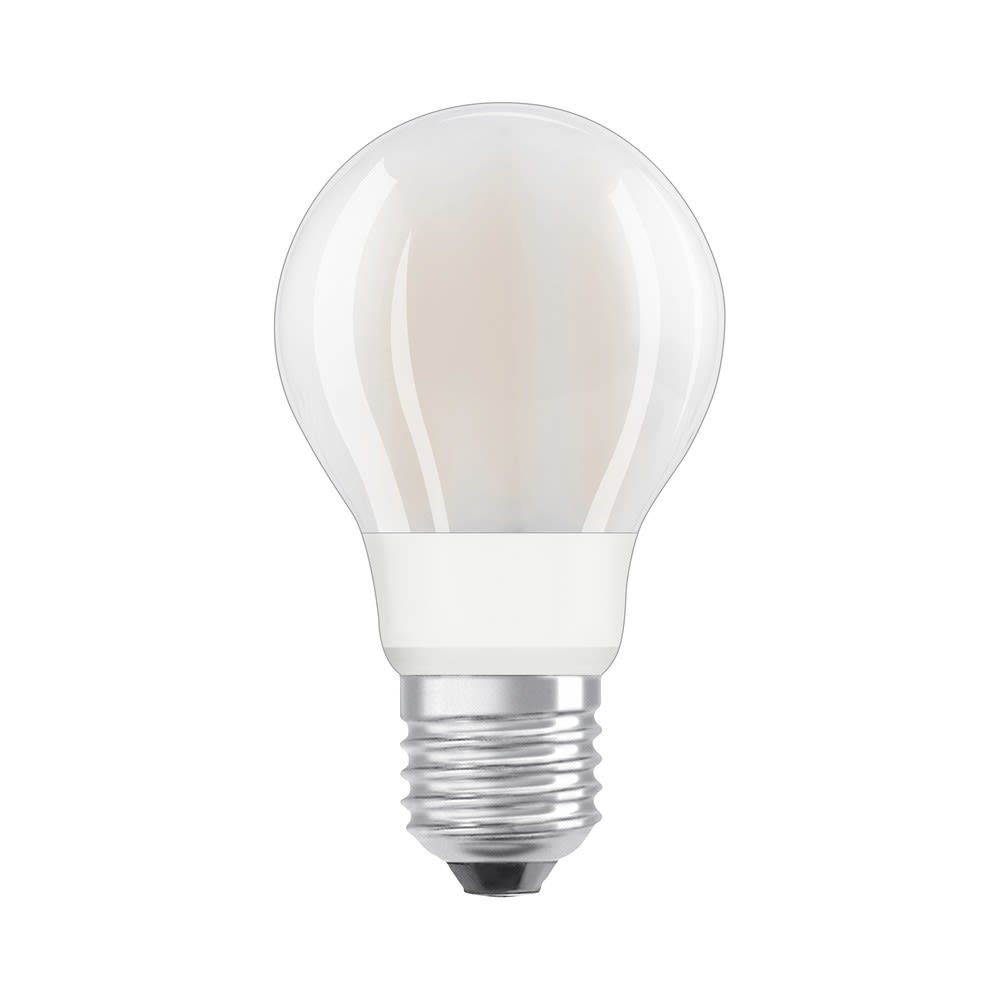 Ampoule à filament forme standard avec technologie Wi-Fi. Caractéristiques du produit: Contrôlable via l'application LEDVANCE SMART+ (avec Android™️ 8.0 ou iOS 14.0 minimum). Contrôlable via Google Assistant et Amazon Alexa possible. Protocole réseau : WiFi. Gradable. Durée de vie jusqu'à 15 000 h. Température de couleur : blanc chaud (2 700 K). Avantages du produit: Contrôle sans fil via l'application. Facile à installer et à utiliser. Ne contient pas de mercure. Consommation d'énergie inférieure à celle des lampes à incandescence ou halogènes. Zones d'application: Éclairage général. Intérieurs résidentiels. Professionnels (hôtels, bars, boutiques, etc.). Utilisation en extérieur uniquement dans des luminaires d'extérieur appropriés. Technique / Accessoires: Pour le contrôle via l'application LEDVANCE SMART+, un smartphone ou une tablette est requis (avec Android 8.0 ou iOS 14.0 minimum). Conseils de sécurité: Ne touchez pas la lampe si elle est cassée.. Ne doit pas être utilisé si l'ampoule extérieure est défectueuse..