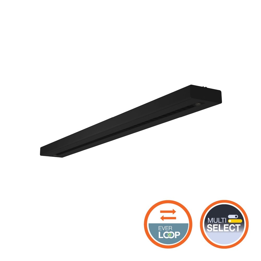 Linear IndiviLED EVERLOOP (source et alim remplaçables). Sensor présence, luminosité, gradable. Eclairage direct/indir, 122lm/W, 4000K, IRC90, angle 90°, UGR19, 70000h L80, Classe I. Fil incan 850°C. 1488x120x40mm. ENEC. Garantie 5 ans